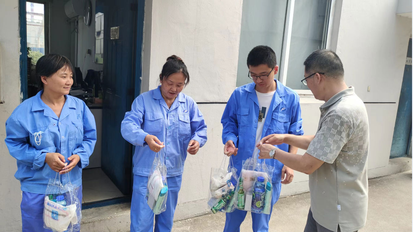公司為高溫崗位員工精心準(zhǔn)備了防暑降溫用品,讓每一名員工感受到了公司的關(guān)懷,從而激發(fā)出更大的工作熱情。